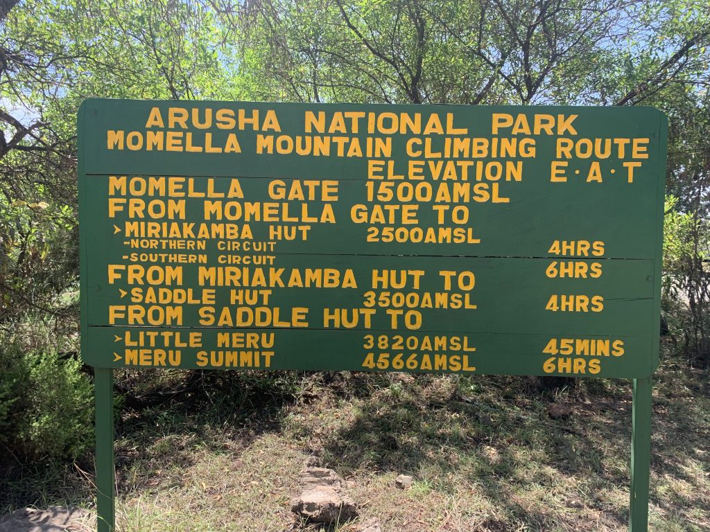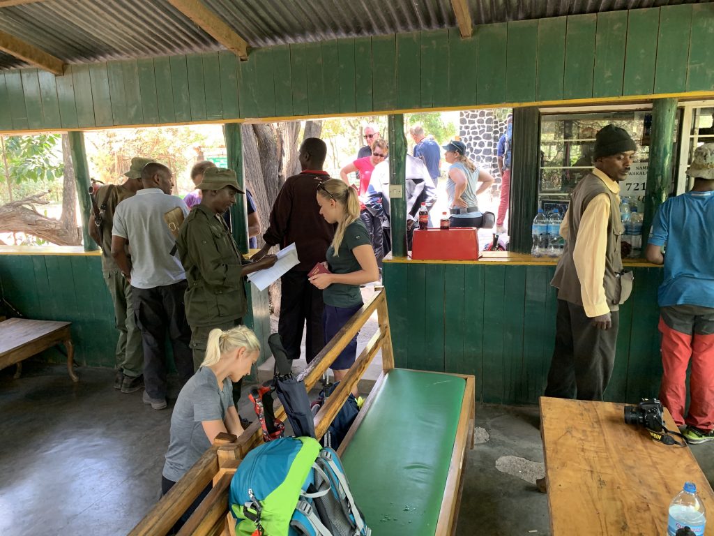 Ausgangspunkt für die Besteigung des Mount Meru ist das Momella Gate, wo sich auch die Rangerstation befindet. Hier wird man noch einmal mit einem Lunchpaket versorgt und heuert den Ranger für die Gruppe an. Allein das Verspeisen des Lunchpakets war schon ein Abenteuer, denn die in der Gegend lebenden Affen haben natürlich längst spitz bekommen, dass man das Essen der Touristen ganz hervorragend klauen kann. Da ist also tatsächlich Obacht geboten, wie wir am eigenen Leib erfahren mussten. Da wir in unserer Gruppe nur zu viert waren, schlossen wir uns mit einer weiteren kleinen Gruppe zusammen und engagierten gemeinsam einen Ranger, was die Sache damit dann für alle günstiger machte.