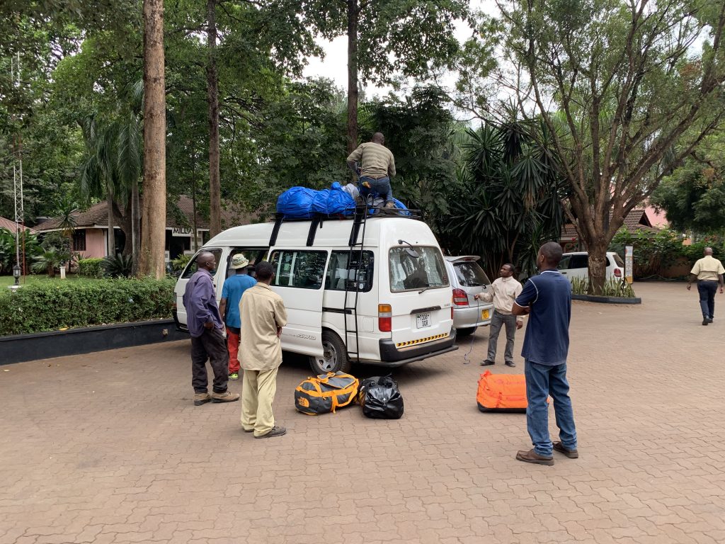 Nachdem wir glücklich ob der erfolgreichen Besteigung des Mount Meru ins Hotel zurückgekehrt waren, hieß es zunächst mal, die Kleidung zu waschen und vor allem die Taschen für den Kili umzupacken. All dies musste noch am selben Tag geschehen, da wir am nächsten Morgen direkt von unserem Guide Peter, der uns auch auf den Meru begleitete abgeholt würden, um das Abenteuer Kilimanjaro zu starten. Ich hatte irgendwo gelesen, dass man auf die verabredeten Zeiten in Tansania immer getrost eine halbe Stunde aufschlagen kann. Nicht so bei Peter! Wenn 08:30 Uhr ausgemacht war, dann meinte er auch 08:30 Uhr. Für ein gutes Frühstück im Hotel war aber dennoch Zeit. Anschließend wurde erneut unsere Aufrüstung auf den schon bekannten Minibus geschnallt und auf ging es in Richtung Machame Gate, dem Ausgangspunkt unserer Besteigung.