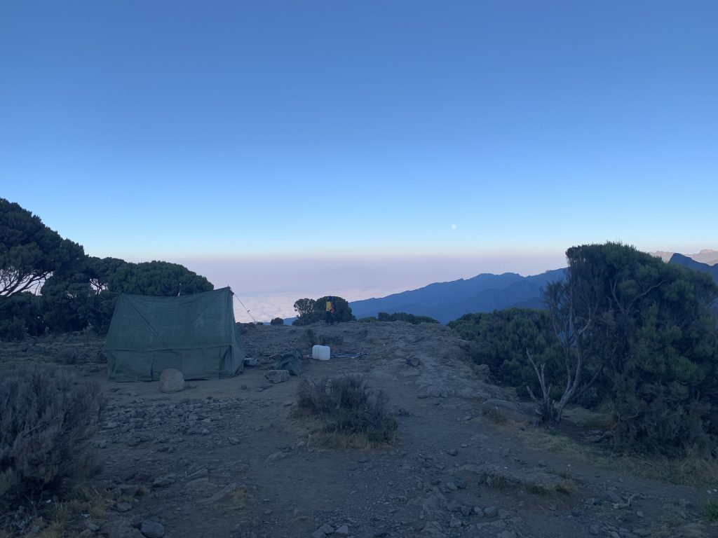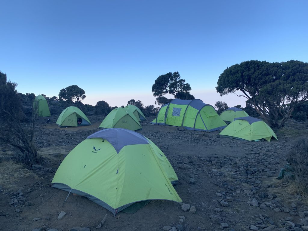 Mit einem weiteren leckeren Abendessen von unserem Koch Thomas ging es nach einem weiteren tollen Tag ins Bett. Da man sich am Kili mehr oder weniger direkt am Äquator befindet, sind die Sonnenauf- und untergänge entsprechend kurz. Im Prinzip wird es um 19:00 Uhr auf einen Schlag dunkel und am nächsten Morgen um 07:00 Uhr genauso schlagartig wieder hell.