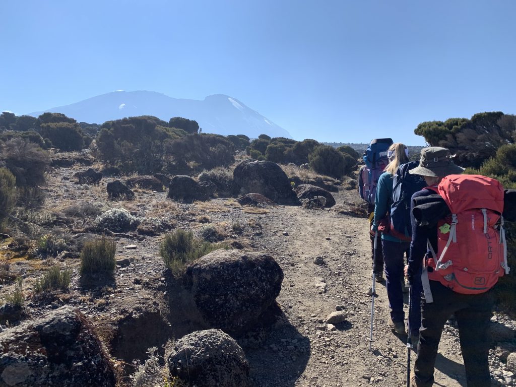 Auch die zweite Nacht war überraschend gut in unserem Zelt. Und das war auch durchaus hilfreich, denn heute sollte es das erste Mal richtig hoch hinausgehen. Vom Shira Cave Camp führte die Route zunächst hinauf zum Lava Tower auf stattliche 4.600 Meter und damit höher als den Gipfel des Mount Meru. Von dort sollte es dann weitergehen zu unserem Ziel, dem Barranco Camp auf 3.900 Meter. Somit erledigten wir das obligatorische „Walk high, sleep low“ quasi schon auf dem regulären Weg.