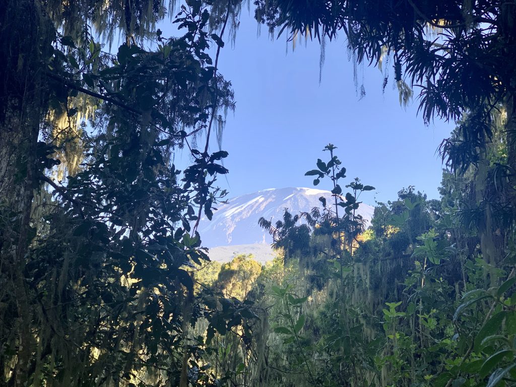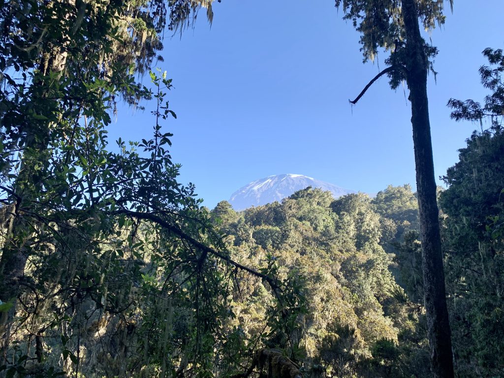 Ein letztes Highlight sollte uns aber auch noch bevorstehen. An einer Stelle führte ein kleiner Trampelpfad rechts von unserem Weg ab, auf den uns Peter schickte. Nach ein paar Schritten wussten wir auch warum. Hier bot sich nämlich noch einmal ein letzter aber umso schönerer Blick zurück auf unseren Berg der Träume, den Kilimanjaro. Unglaublich, wie weit er von diesem Punkt aus schon wieder entfernt schien. Unglaublich, dass wir tatsächlich erst vor wenigen Stunden dort oben auf dem Gipfel gestanden haben.