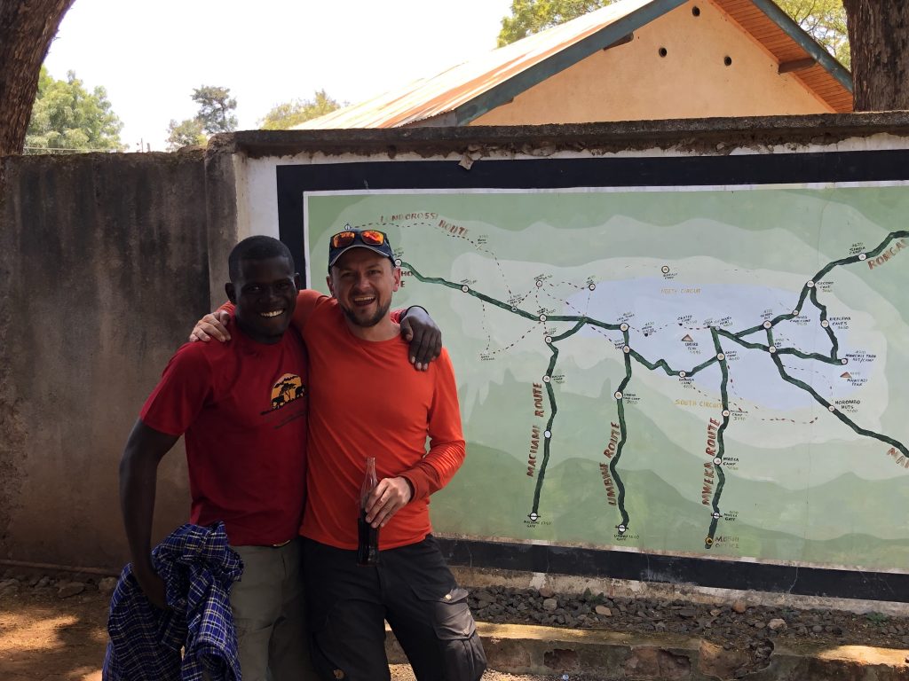 Ein paar weitere Kilometer weiter und wir hatten schließlich das Mweka Gate erreicht, wo sich inzwischen auch einige weitere Wanderer und auch eine wahre Schar an Trägern eingefunden hatte. Eine letzte, aber umso erfreulichere Formalie wartete hier noch auf uns. Wir mussten nicht nur von unserer Route quasi „auschecken“, sondern erhielten am Gate auch unsere wohlverdiente Gipfel-Urkunde. Diese sammelte jedoch zunächst erstmal Peter ein, da wir sie später im Rahmen einer Zeremonie im Garten unserer Agentur in Moshi erhalten sollten.