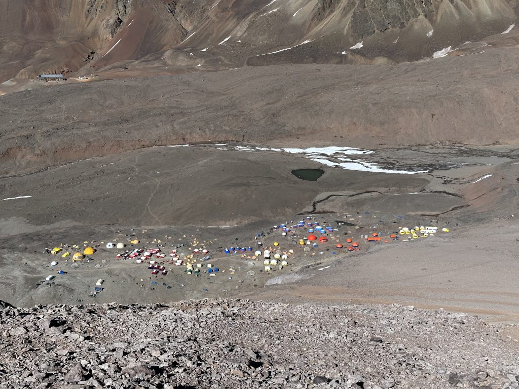 Im Zelt angekommen war meine Stimmung natürlich einigermaßen im Keller und die Gedanken, es doch am nächsten Tag zu versuchen oder nach Mendoza zurückzukehren spielten Pingpong. Am Nachmittag kehrte der Rest des Teams dann von Nido de Cóndores zurück, um noch eine weitere Nacht in Plaza de Mulas zu verbringen. Walk high, sleep low. Meine Entscheidung, es nicht weiter zu versuchen verfestigte sich immer mehr und am Abend war ich dann auch komplett im Reinen damit. Bis hier hin war es einfach großartig und manchmal sollte man vielleicht einfach auf sein Bauchgefühl hören. Wo auch immer es in diesem Fall her kam… Während der Rest am Folgetag noch einen Ruhetag vor dem nächsten Aufstieg nach Nido de Cóndores einlegte und die benötigten Lebensmittel vorbereiteten, regelte ich noch die Formalitäten für meinen Rücktransport und marschierte anschließend los in Richtung Camp Canada, um meinen dort am Vortag deponierten Rucksack abzuholen. Ich blieb noch einige Zeit dort oben und genoss die Aussicht über die Anden, völlig im Reinen und zufrieden mit meiner Entscheidung und einfach dankbar für tolle Erlebnisse, ein fantastisches Team und großartige Eindrücke, die ich mit nach Hause nehmen durfte. Klar, ein Funken Enttäuschung, es nicht zum Gipfel des Aconcagua geschafft zu haben, war mit dabei. Allerdings wirklich nur in einer hinteren Ecke meiner Gedanken.